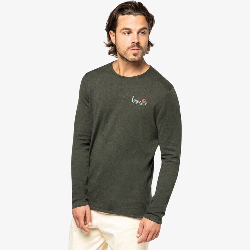 Pull col rond Lyocell TENCEL™ pour homme. Coupe ajustée, bord côte col tubulaire 1x1 en matière principale. Finition tubulaire en matière principale bas de manches et de vêtement. Tricoté en « Fully fashion ». Jauge 14. Composition : 50% coton biologique peigné, 50% Lyocell TENCEL™*. *TENCEL™ est une marque de Lenzing AG.