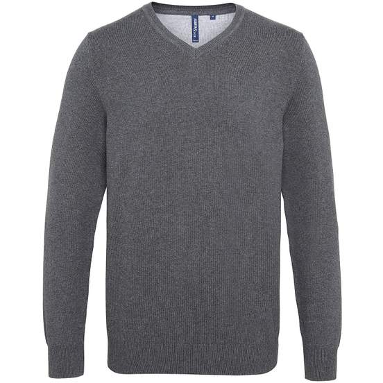 AQ042 - Pull col V homme en coton mélangé - charcoal