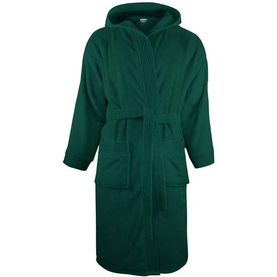 Le Bathrobe Hooded est un peignoir en coton terry brossé avec capuche et deux poches. Coupe large, adapté à un usage après douche et à la personnalisation.