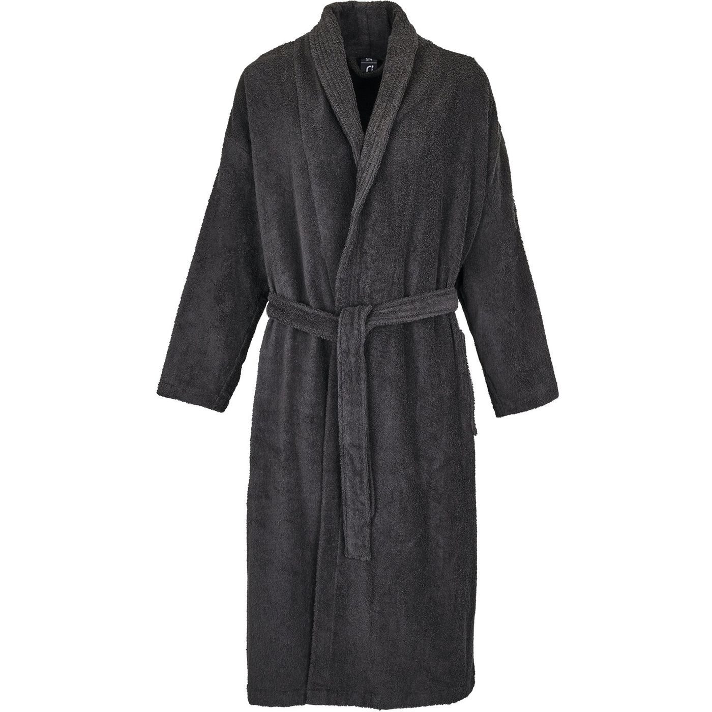 Peignoir unisexe col châle. 2 poches plaquées. Ceinture avec doubles passants. Col châle et passant avec 2 positions. Composition : 100% coton.