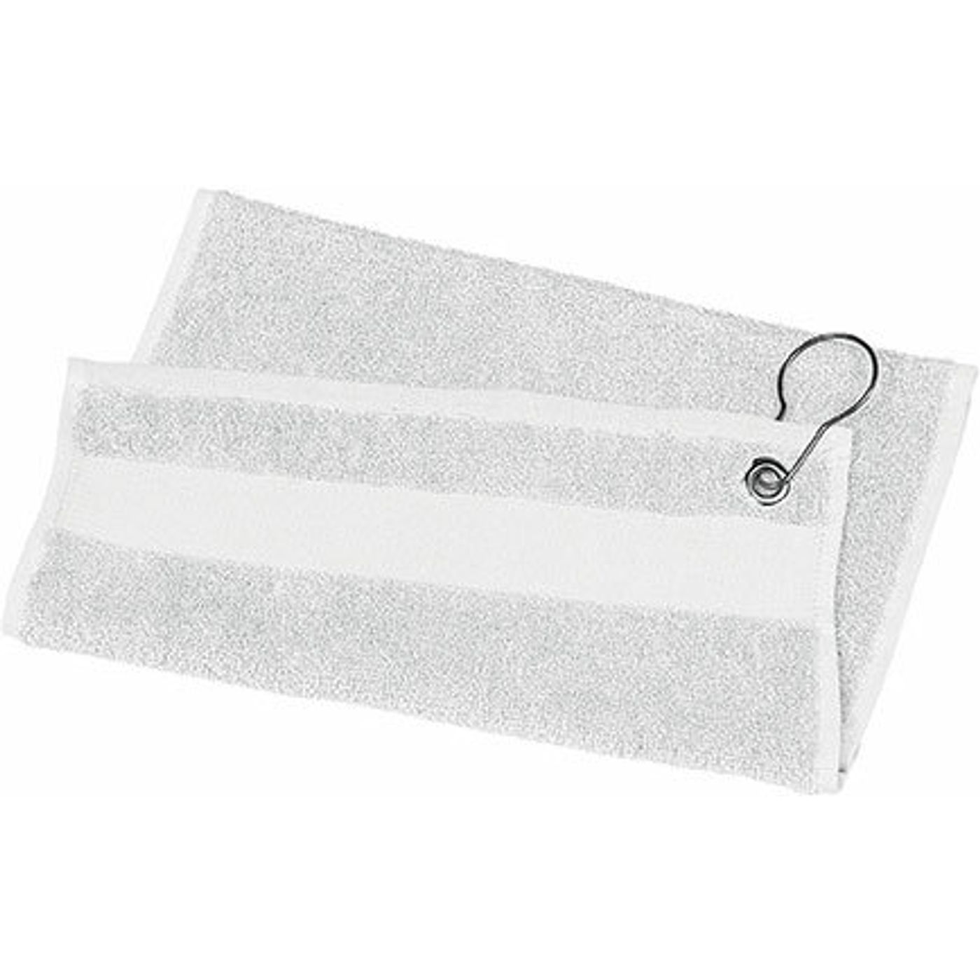 Serviette de golf. Œillet métal sur le côté. Vendue avec oeillet + crochet. Dimensions : 50 x 30 cm. Certifié STANDARD 100 by OEKO-TEX® N° CQ 1007/6, IFTH. Composition : 100% coton.