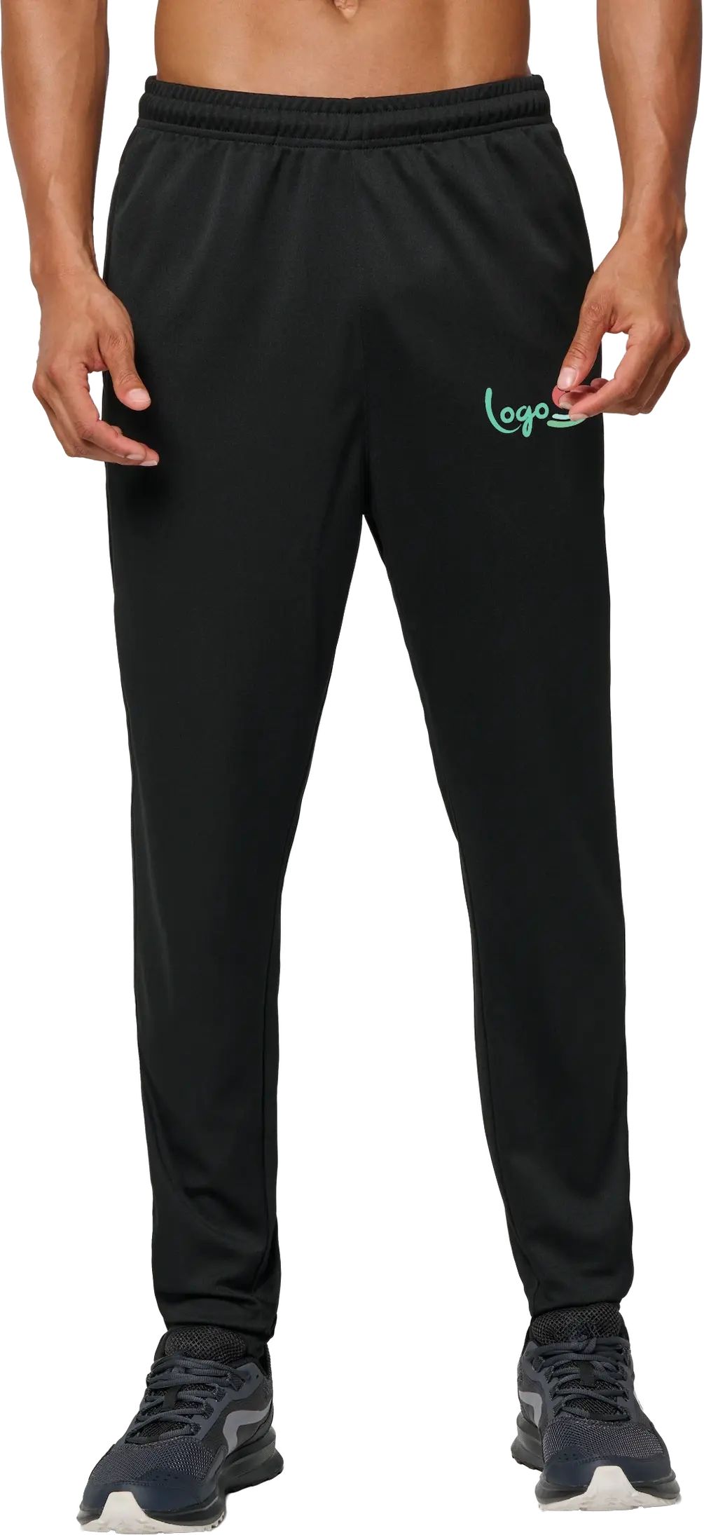 Coupe slim. 2 poches côtés zippées. Ceinture élastiquée avec cordon de serrage rond et embout caoutchouc placé à l'intérieur de la ceinture. Bas de jambe zippés avec ourlet double aiguille. Étiquette de marque détachable pour faciliter la personnalisation. Composition : 100% polyester interlock mat.