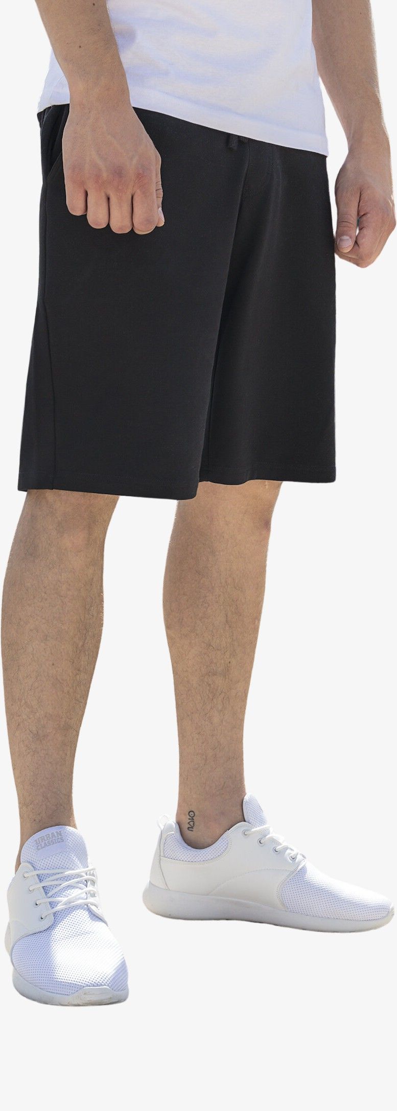 Short. Étiquette de taille sans marque. Taille large avec cordon de serrage. Longueur genoux. Ourlet à couture renforcée. Coupe ample. Composition : Black: 95% coton / 5% élasthanne; Charcoal: 57% coton / 38% polyester / 5% élasthanne; Heather Grey: 85% coton / 10% viscose / 5% élasthanne