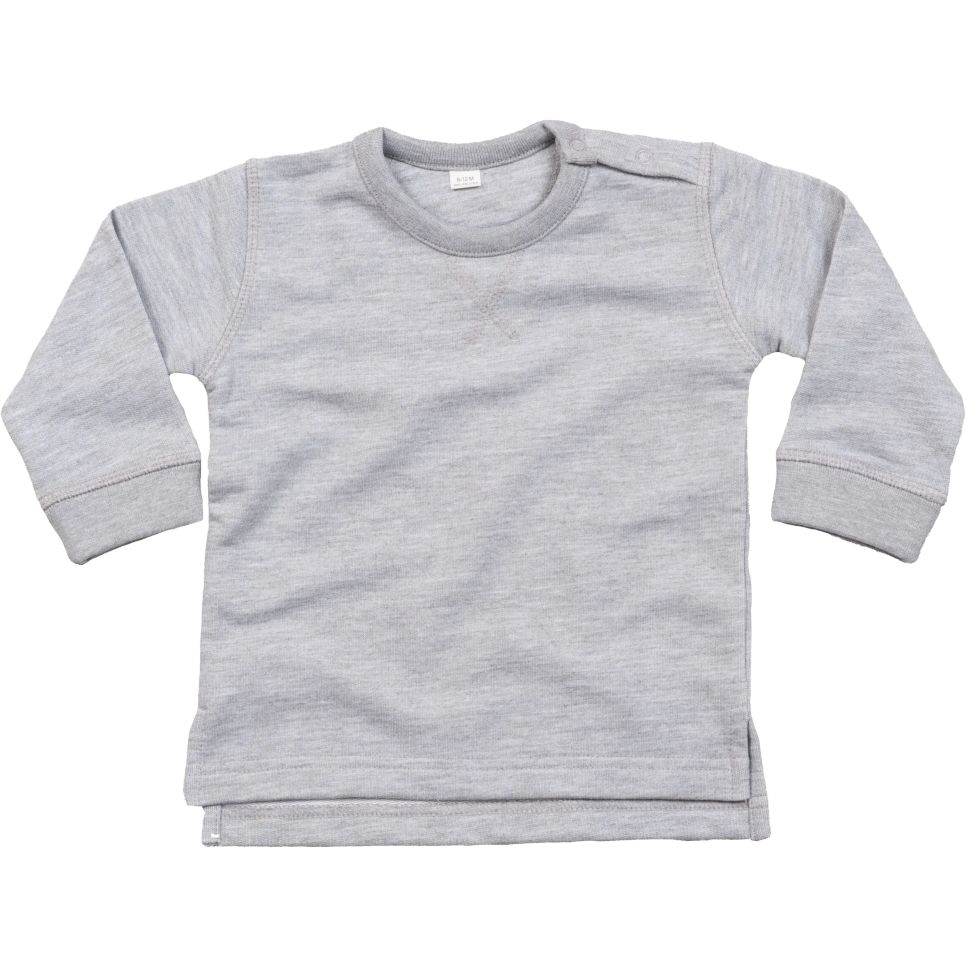 Le Baby Sweatshirt est un sweat enfant col rond avec 2 boutons pression à l’épaule, bords côte et fentes latérales. Conçu pour un usage quotidien, il facilite l’habillage et peut être personnalisé.