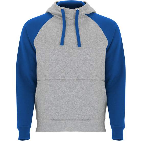 Le sweat à capuche Badet est un modèle bicolore unisexe avec col croisé, poche kangourou et manches raglan. Molleton gratté. Composition : 50% coton, 50% polyester (gris chiné : 55% coton, 40% polyester, 5% viscose).
