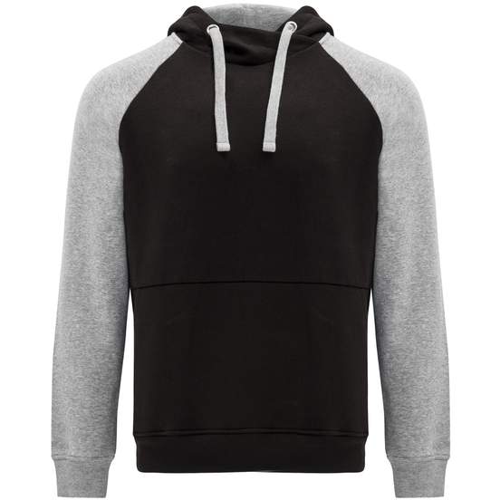 Le sweat à capuche Badet est un modèle bicolore unisexe avec col croisé, poche kangourou et manches raglan. Molleton gratté. Composition : 50% coton, 50% polyester (gris chiné : 55% coton, 40% polyester, 5% viscose).