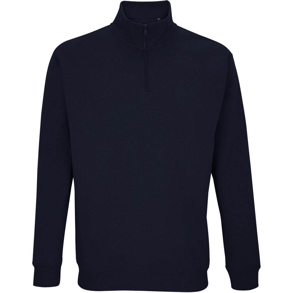 Le sweat col camionneur Conrad est un sweat-shirt unisexe coupé cousu, avec manches montées et col camionneur avec 1/4 zip. Bord-côte 1x1 aux poignets et bas du corps. Demi-lune et bande de propreté dans l'encolure. Composition : 80% coton, 20% polyester recyclé. Gris chiné : 73% coton, 20% polyester recyclé, 7% viscose.