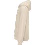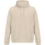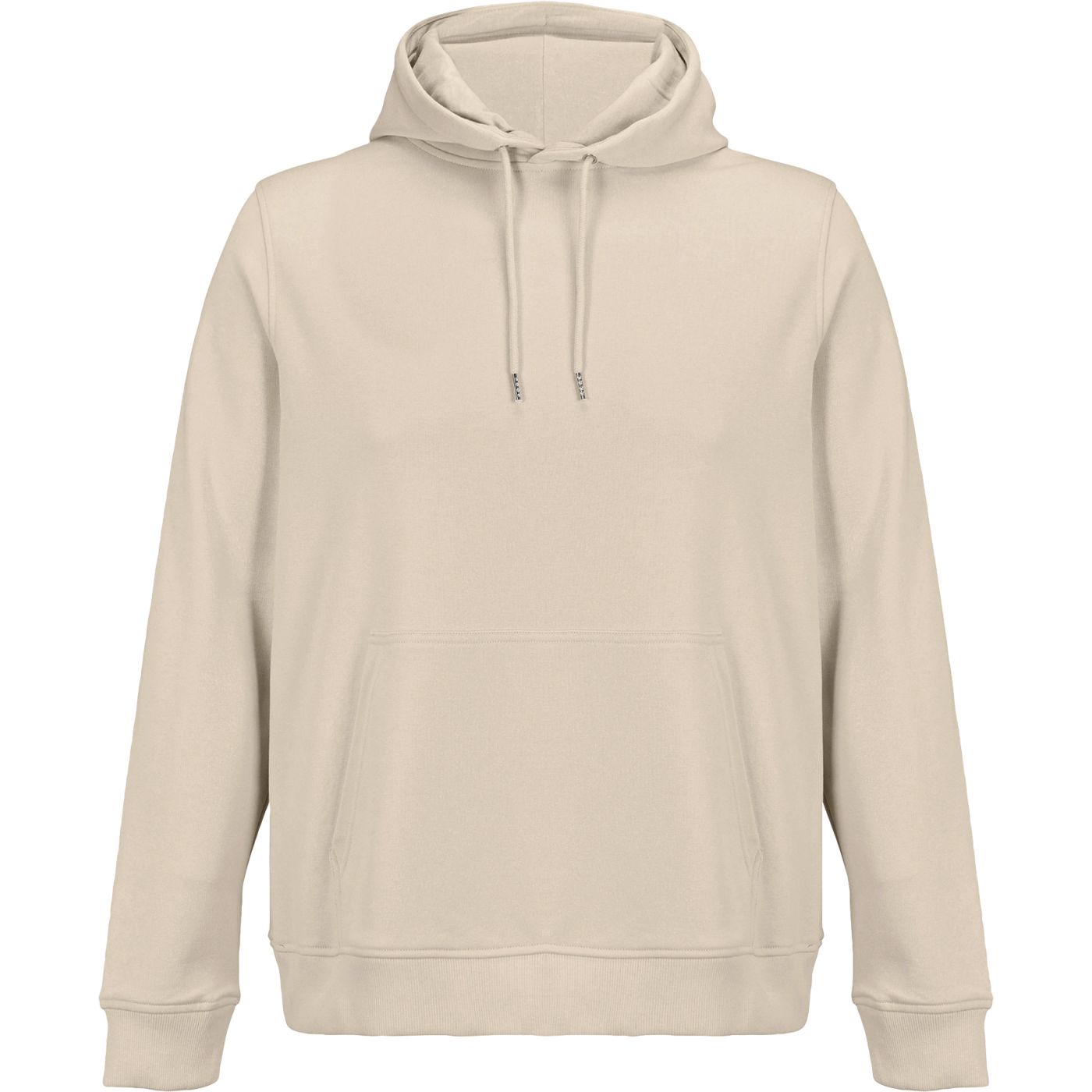Sweat-shirt unisexe à capuche. Coupé cousu. Manches montées. Poignets et bas en bord côte 2x2. Poche kangourou. Demi-lune et bande de propreté en jersey dans l'encolure. Capuche doublée en jersey. Cordon de resserrage avec œillets et embouts en métal. Composition : 85% coton peigné biologique, en conversion, 15% polyester recyclé ; 3 fils ; Intérieur non gratté ; Extérieur 100% coton biologique, en conversion. Gris chiné 82 % coton bio, 13 % polyester recyclé, 5 % viscose.