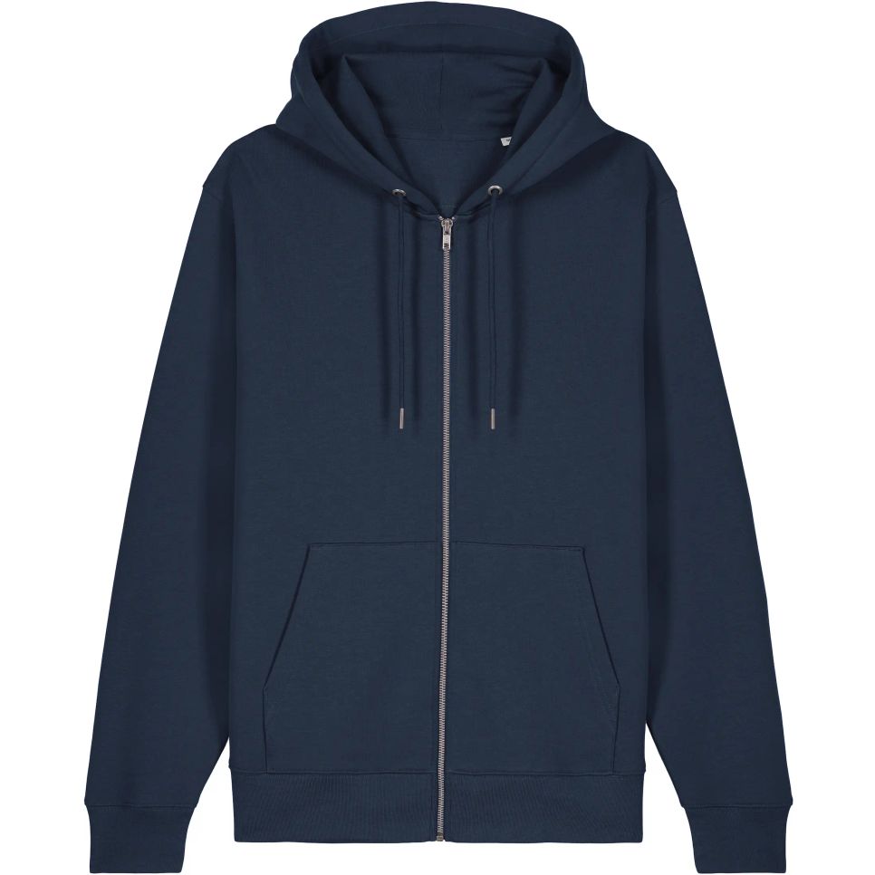 Le sweat à capuche zippé unisexe Cultivator 2 0 convient à un usage quotidien. Capuche double doublée, cordons ronds, poche kangourou et zip métal apparent. Composition : 100% coton biologique filé peigné.