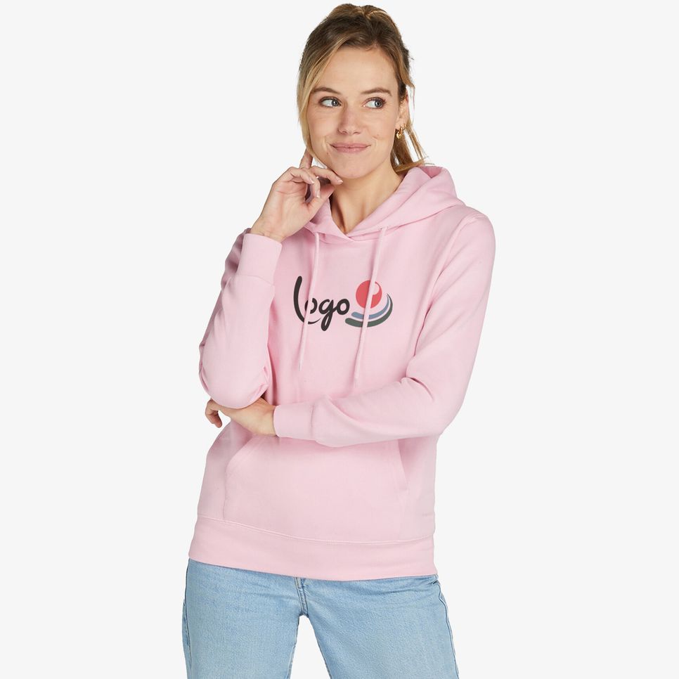 Le Hooded Sweatshirt Women est un sweat à capuche femme à coupe classique, avec intérieur fleece peigné et coutures latérales. Poche kangourou et cordon de serrage. Personnalisable.