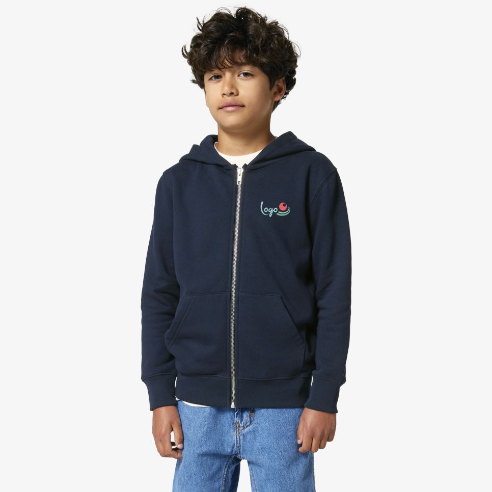 Le Mini Cultivator 2 0 est un sweat à capuche enfant zippé en coton biologique filé peigné. Capuche doublée, manches montées, poche kangourou et finitions en côtes 1x1 aux poignets et à la base. Adapté à la personnalisation.