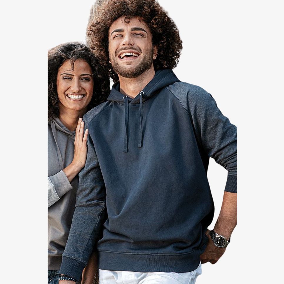 Le sweat à capuche My mate Hoody convient à un usage quotidien, avec coupe moderne, manches raglan et poche kangourou. Capuche 3 pièces double couche, cordon plat ton sur ton et finitions en tricot côtelé. Personnalisable.
