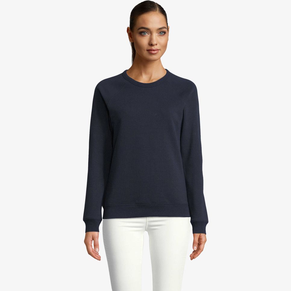 Le sweat Nelson Women pour femme est un modèle à col rond avec manches longues raglan, en matière French Terry. Demi-lune en jersey fin et finitions en bord-côte 2x2 aux poignets et à la base. Conçu pour être personnalisé.