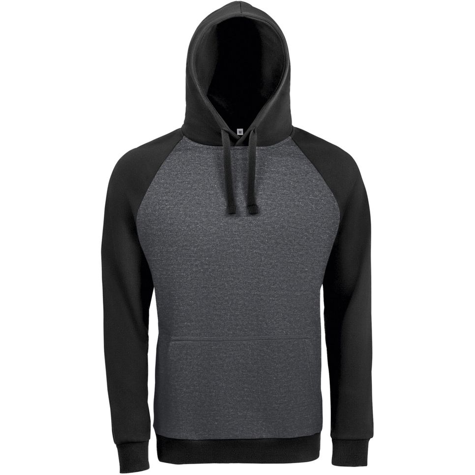 Le sweat à capuche Seattle unisexe bicolore en molleton avec intérieur gratté et extérieur 100% coton. Capuche doublée avec cordon de serrage, poche kangourou et manches raglan pour un usage quotidien. Personnalisable.