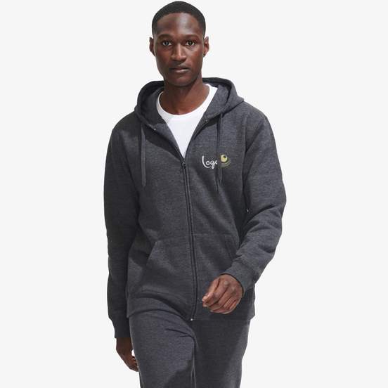 Le sweat à capuche Seven men est une veste zippée pour homme avec capuche doublée, intérieur molleton gratté et deux poches kangourou. Modèle personnalisable pour un usage quotidien ou associatif.