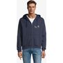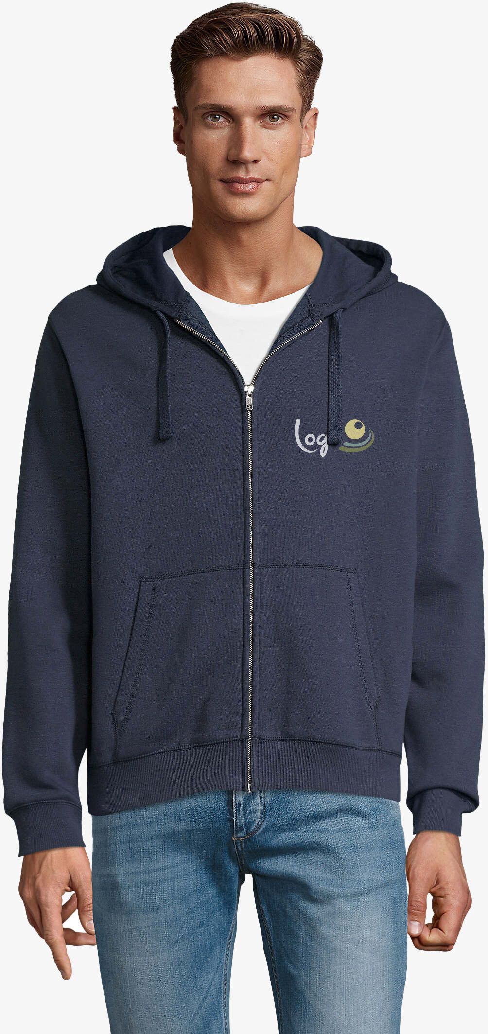 Veste zippée homme à capuche. Manches montées. 2 poches kangourou, coupé cousu. Capuche doublée avec cordon de serrage ton sur ton. Poignets et bas en bord côte 2x2. Demi-lune à l'intérieur du col. Bande de propreté intérieur col. 80% coton Ringspun 20% polyester. Intérieur gratté. Extérieur 100% coton.