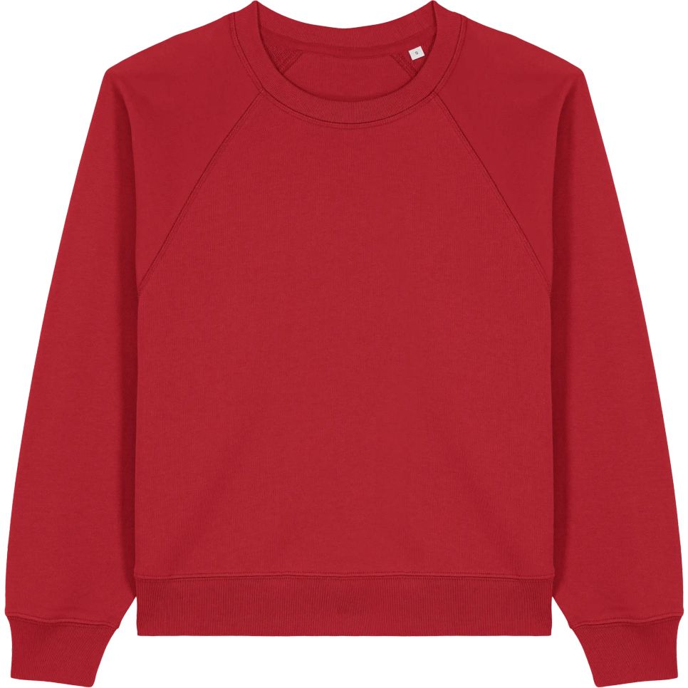 Le sweatshirt femme Stella Clara en coton biologique filé peigné, avec manches raglan, côtes 2x1 et coutures flatlock trois aiguilles. Bande de renfort intérieur au col et demi-lune au dos du cou. Convient à un usage quotidien et peut être personnalisé.
