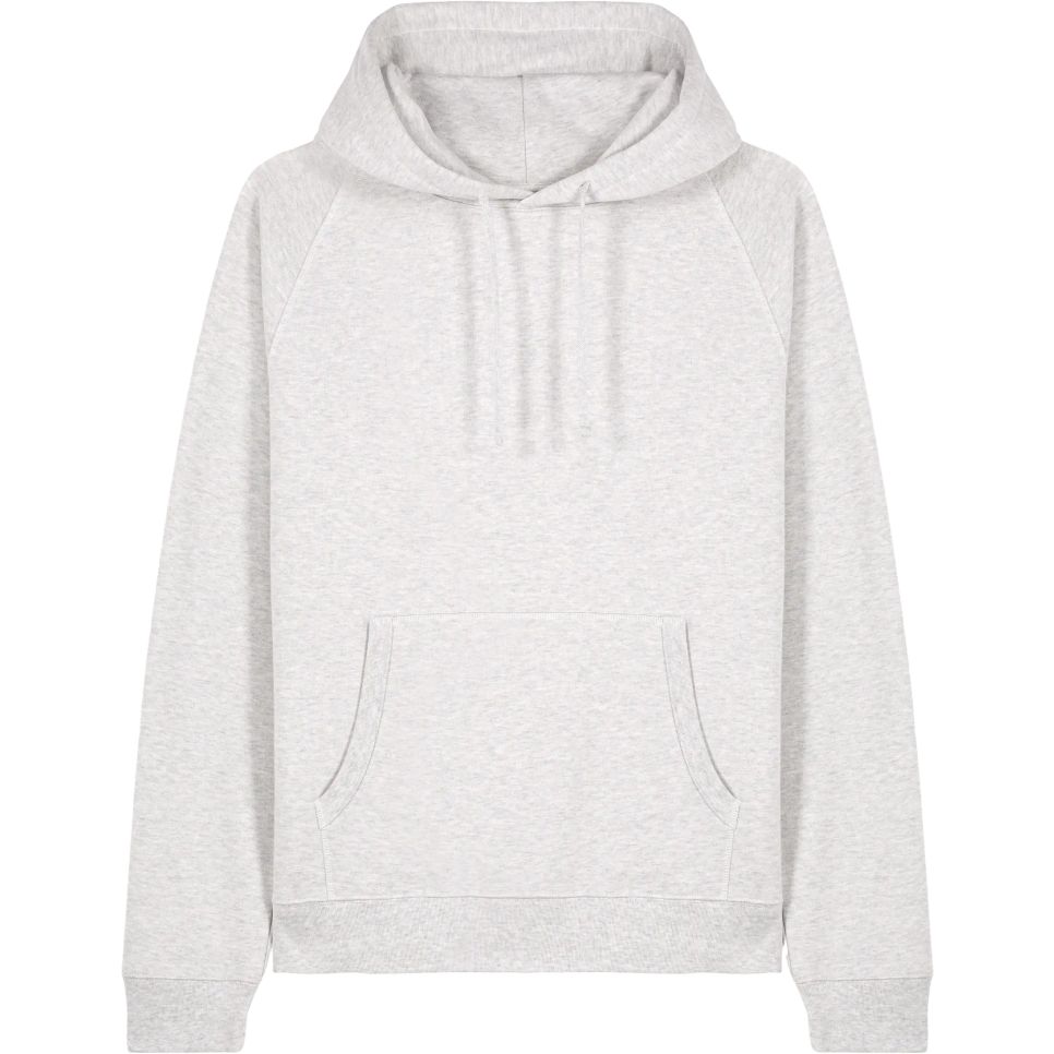 Le sweat à capuche Striker unisexe en molleton brossé avec manches raglan, capuche doublée et poche kangourou. Finitions en côtes 1x1 et surpiqûres doubles. Composition : 100 % coton biologique. Heather Haze : 80 % coton biologique, 20 % coton recyclé.