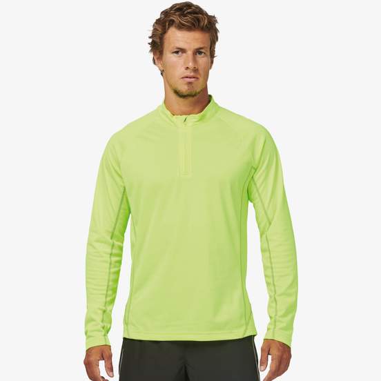 Sweat running 1/4 zip homme : 100% polyester polytricot. Manches raglan. Surpiqûres contrastées.