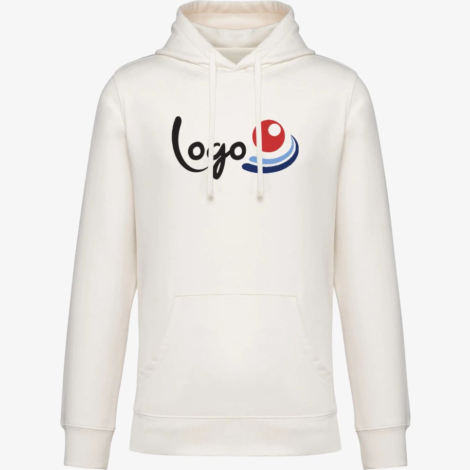 Le sweat-shirt à capuche unisexe est conçu en coton biologique peigné avec une coupe standard à épaules tombantes. Il comporte un molleton 3 fils gratté, une capuche doublée en tissu principal ton sur ton et une poche kangourou. Le cordon plat en coton biologique est maintenu par une surpiqûre autour de la capuche.