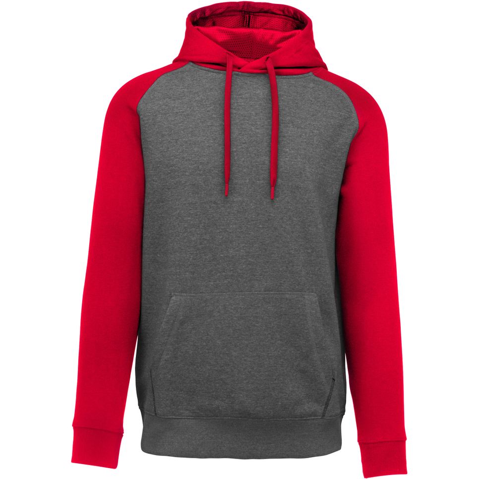 PA369 - Sweat-shirt capuche bicolore adulte - grey_heather/sporty_red