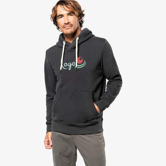 80% Coton / 20% Polyester (Ash Heather : 79% coton / 20% polyester / 1% viscose). Molleton gratté. Toucher peau de pêche et aspect "Vintage". Capuche doublée. Cordon capuche rond et contrasté. Bande de propreté fantaisie à l'encolure. Poches kangourou. Finition bord-côte bas de manche et bas de vêtement. Ce produit a subi un traitement spécial et présente un aspect volontairement vieilli. Ce procédé de fabrication implique des variations de couleurs d'un produit à l'autre et rend chaque pièce unique. Pas d'étiquette de marque au col, uniquement une indication de taille pour faciliter la personnalisation.
