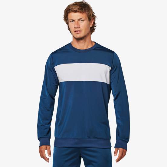 Le Sweat Shirt Polyester est un sweat polyester à encolure ronde, avec bande contrastée sur le devant et bande de propreté à l\u2019intérieur du col. Les finitions en bord-côte avec élasthanne au col, aux bas de manches et au bas du vêtement assurent une tenue ajustée. Ce modèle est personnalisable.