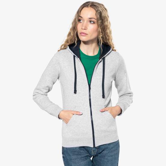 Sweats personnalisés - K467 - sweat-shirt zippé capuche contrastée femme
