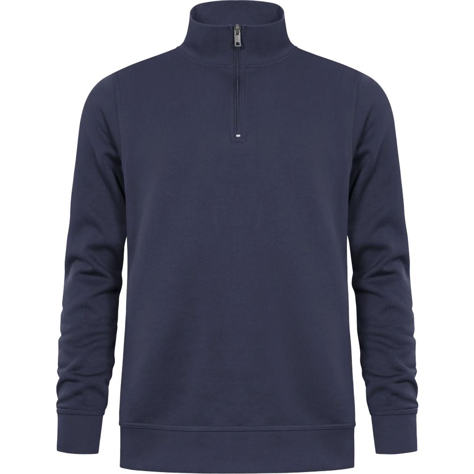 Sweat col zippé. Poches sur les côtés. Intérieur brossé. Col, taille et poignets en bords côte avec élasthanne. Couture latérale décalée. Composition : 68 % coton, 32 % polyester.