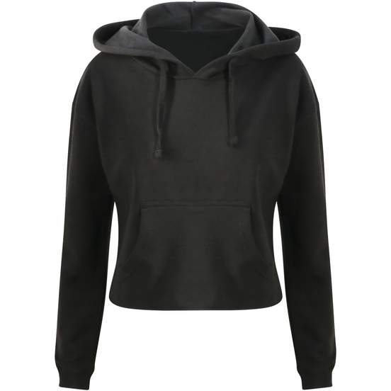 Le sweat à capuche court femme Womens Cropped Hoodie convient aux usages quotidiens grâce à sa capuche double épaisseur, sa poche kangourou et sa coupe courte. Le tissu majoritairement coton ringspun offre une surface adaptée à la personnalisation.