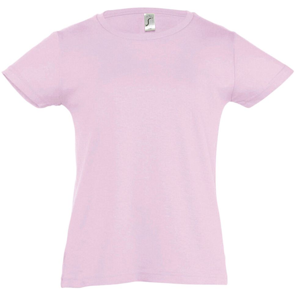 Le tee-shirt fillette Cherry en 100% coton convient à un usage quotidien. Sa coupe cintrée et son col fin assurent une tenue ajustée, avec bande de propreté au col et finition bord côte avec élasthanne. Article personnalisable.