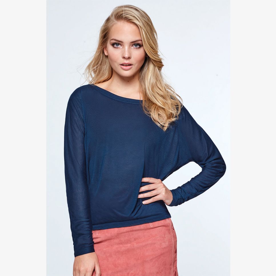 Le tee-shirt Dafne est un modèle à encolure ouverte avec manches raglan de forme chauve-souris. Sa matière en polyester convient à la sublimation et à la personnalisation. L’étiquette adhésive limite les éléments visibles à l’intérieur du vêtement.
