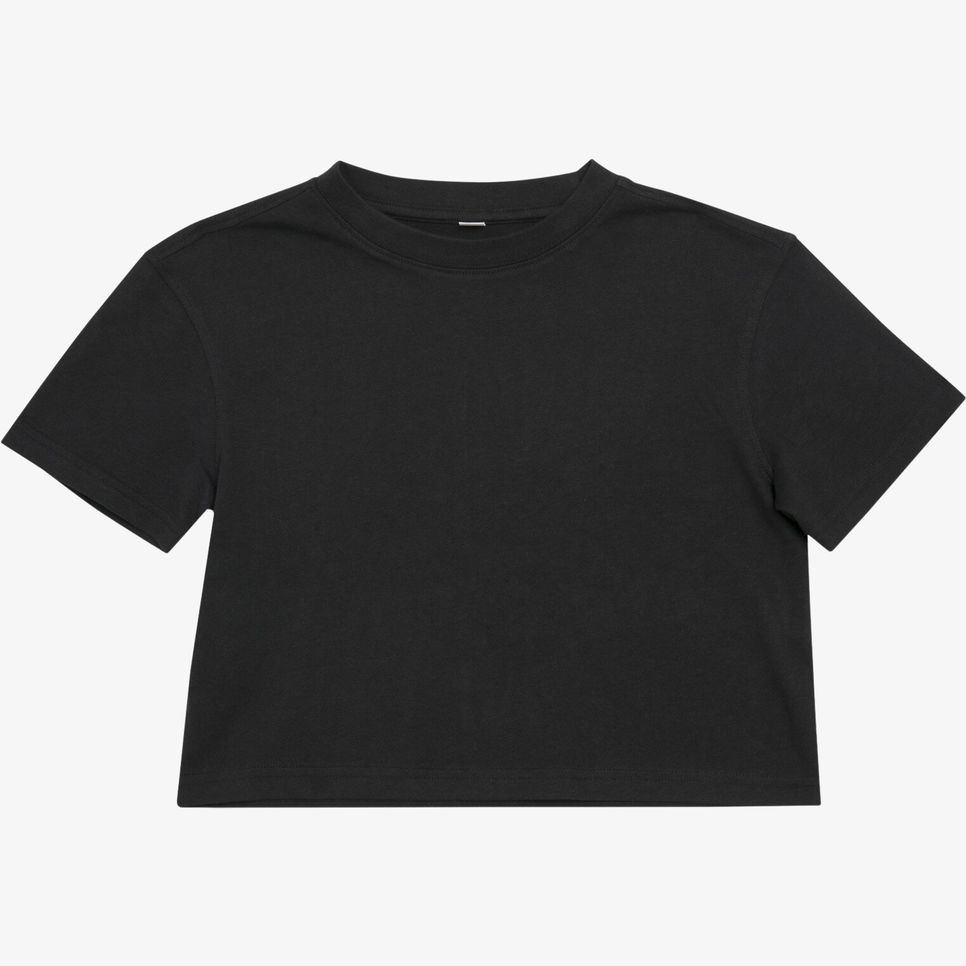 Le tee-shirt court fille à col ras-de-cou et manches courtes convient pour une tenue simple au quotidien. Coupe raccourcie, tissu souple, modèle personnalisable.