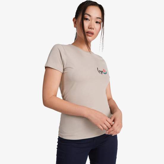 Le tee-shirt Golden Woman pour femme à manches courtes et coupe cintrée convient à un usage quotidien. Col rond en côte 1x1, coutures latérales et étiquette détachable. Composition : 100% coton biologique peigné, jersey simple (gris chiné : 85% coton biologique, 15% viscose).