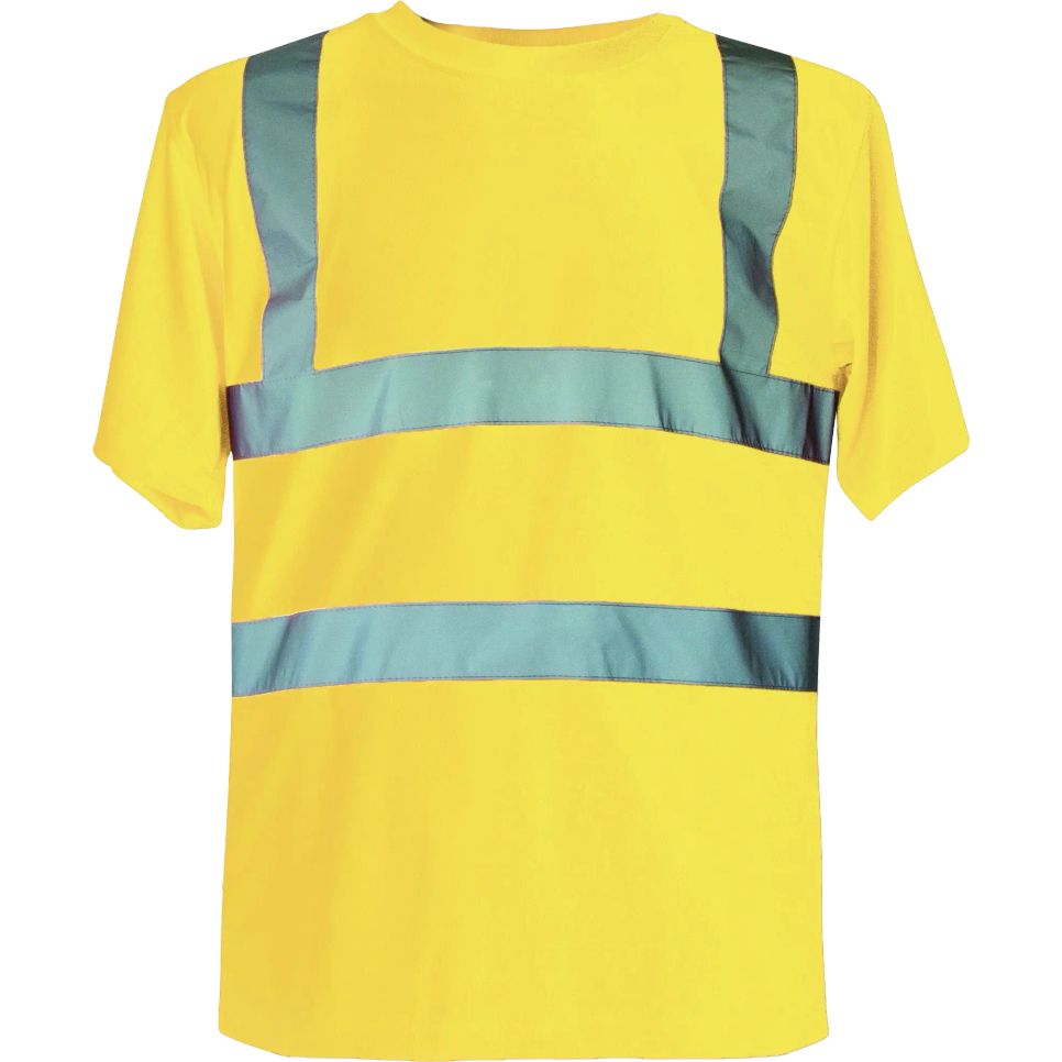 Tee-shirt sécurité. 2 bandes réfléchissantes horizontales et 2 bandes réfléchissantes verticales de 5 cm. Respirant. Composition : 100 % polyester.