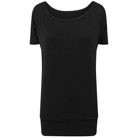 Le tee-shirt Ladies Viscose tee est un modèle en jersey simple, à coupe très longue et manches courtes. Une étiquette neutre indique la taille. Convient à un usage quotidien et à la personnalisation.