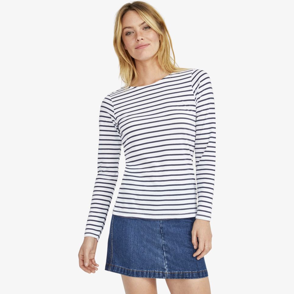 Le tee-shirt femme col rond Marine Women convient à un usage quotidien et à la personnalisation. La coupe ajustée et la confection coupé cousu assurent une tenue près du corps. Le détail chambray à l'intérieur du col apporte une finition discrète.