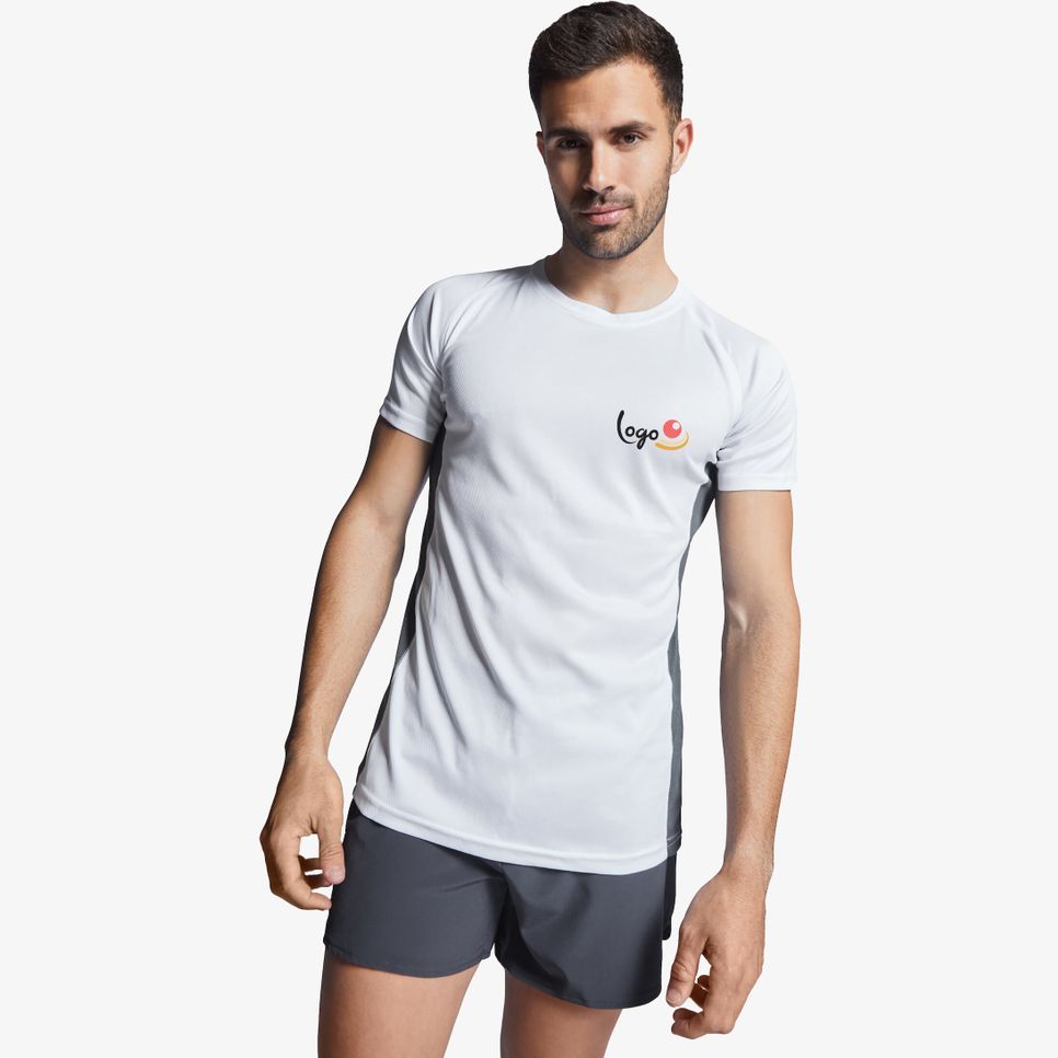 Le tee-shirt Shanghai est un tee-shirt technique à manches courtes raglan, avec col rond et bande de propreté renforcée. Deux tissus polyester sont utilisés, avec panneaux latéraux et intérieur des manches en tissu micro perforé, pour un port respirant. Étiquette détachable. Personnalisable.