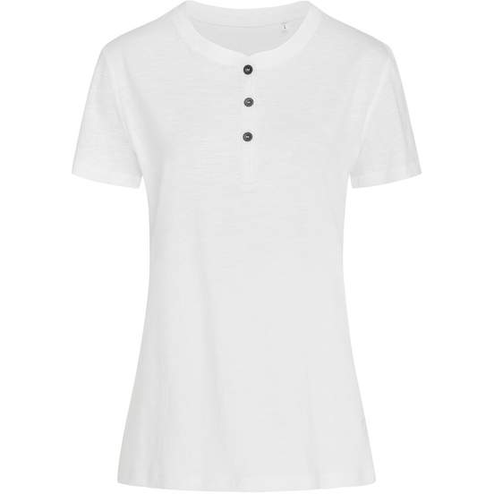 T-shirt Henley tendance avec rangée de boutons pour femme, en fils slub souples pour un visuel structuré. Orné d'une fine rangée de boutons et de points en zigzag décoratifs sur les coutures. fil flammé pour un effet structuré, boutons métalliques, pas d'étiquette de marque dans le cou. fil flammé pour un effet structuré, point zigzag sur les coutures, col à cotes, 3 boutons métalliques (sans nickel), boutonnière étroite, bande de propreté, coutures latérales, petite étiquette de taille dans le cou, étiquette d'entretien dans la couture latérale, lavable à 40°C. Composition : 100% coton ring-spun; fil flammé, jersey simple.