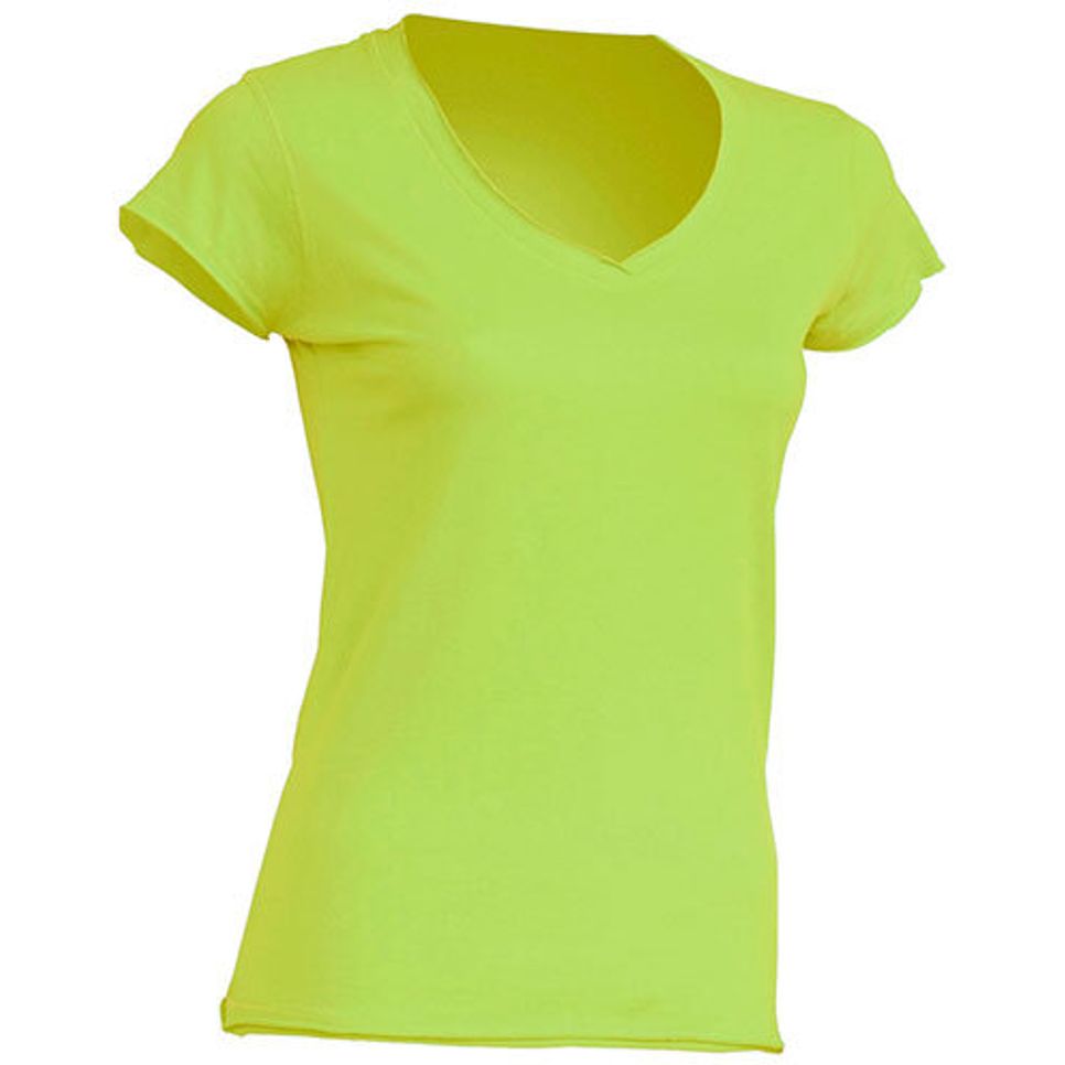 Le tee-shirt Sicilia v neck femme à col V en 100% coton, sans couture et sans finitions à la taille et aux manches. Adapté à un usage quotidien et à la personnalisation.
