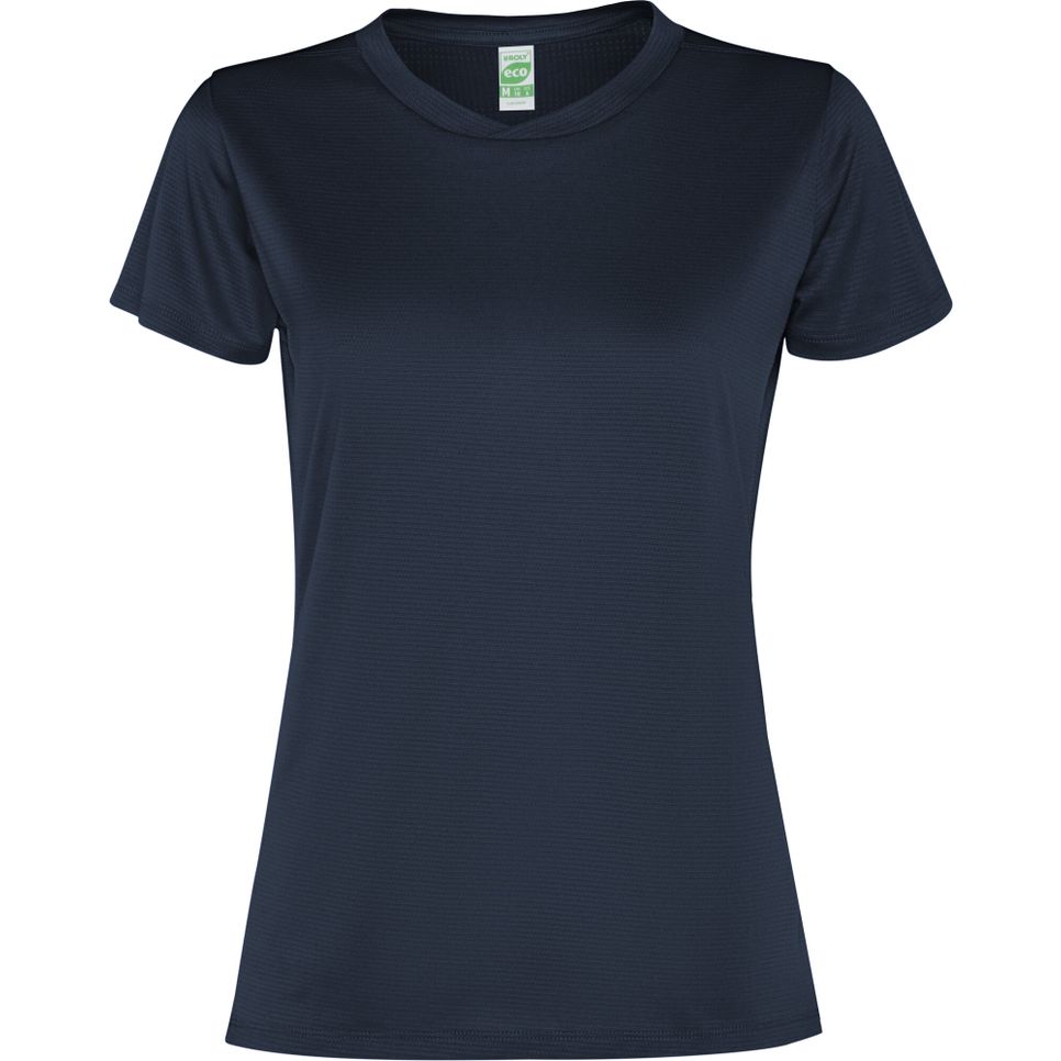 Le tee-shirt Slam Woman est un modèle femme à manches courtes en polyester recyclé, avec col à détails croisés et bas arrondi. Empiècement au dos et aux manches en tissu maillé, pour une meilleure respirabilité. Personnalisable.