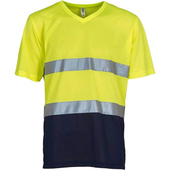 Le tee-shirt col V haute visibilité Top Cool convient aux usages nécessitant une bonne visibilité. Séchage rapide, maille filet respirante et bandes réfléchissantes. Bord-côte ton sur ton au col et aux bas de manches. Personnalisable. Composition : 100% polyester.