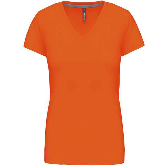 K381 - T-shirt col V manches courtes femme - orange