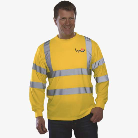 Le tee-shirt manches longues haute visibilité en polyester intègre des bandes réfléchissantes sur le corps, les bras et les épaules. Col et poignets bord-côte pour un port plus stable. Convient aux usages nécessitant une visibilité accrue et la possibilité de personnalisation.