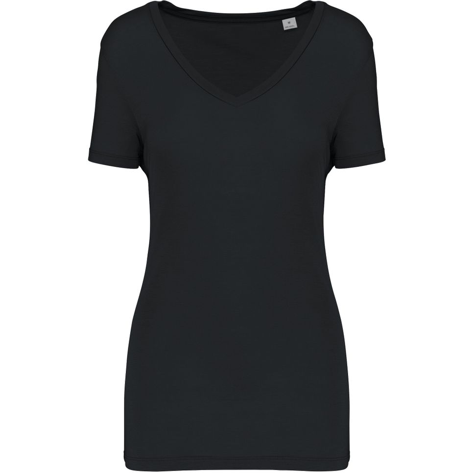 KNS323 - T-shirt Lyocell TENCEL™ col V manches courtes femme - 145 g - black