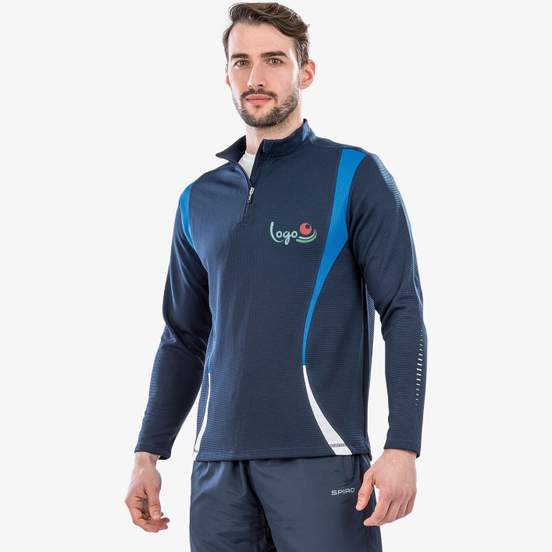 VESTE D'ENTRAINEMENT ¼ ZIP100% polyester tricot respirant « Cool Dry ». Veste col zippé légère à séchage rapide. Logo marque Spiro au dos sur le col. Panneaux contrastés blanc devant. Panneaux contrastés autre coloris devant et au dos