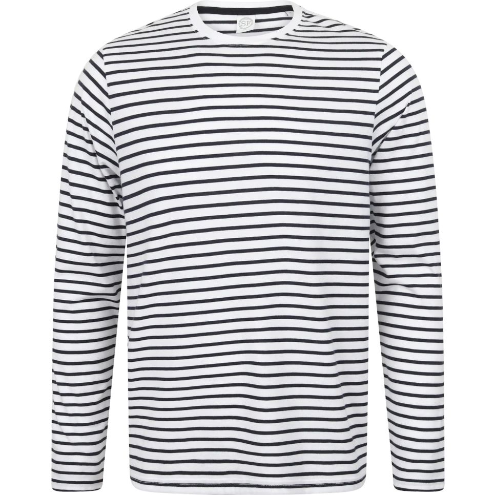 SF204 - Unisex long sleeved striped T - white/oxford_navy