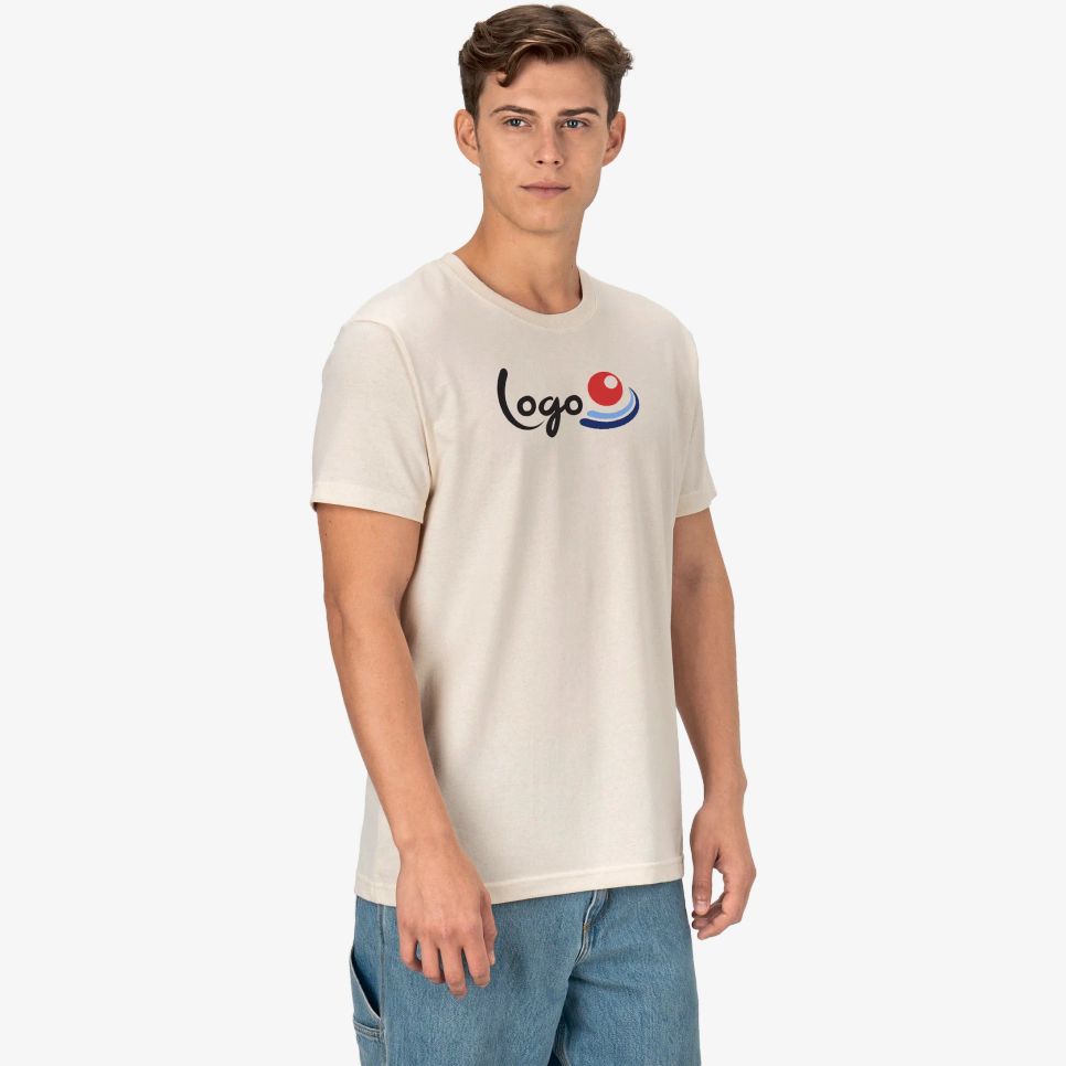 Le tee-shirt unisexe manches courtes est confectionné en jersey simple avec une composition de 60% coton et 40% polyester recyclé. Il comprend un col côtelé double épaisseur avec double couture et une bande renforcée au col. La structure intègre des coutures latérales pour une tenue adaptée.