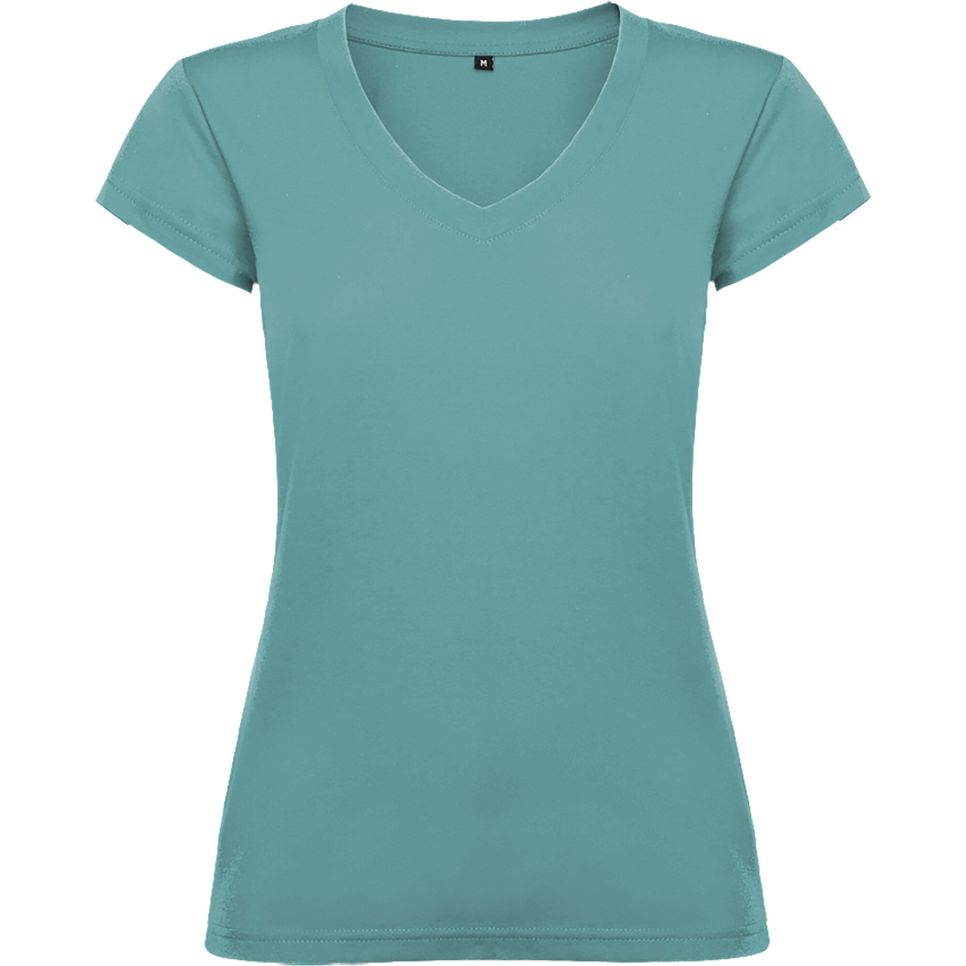 Le tee-shirt femme col V Victoria à manches courtes convient à un usage quotidien. La coupe près du corps et les coutures latérales structurent la tenue, avec étiquette détachable. Personnalisable.