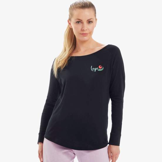 Le Women s Loose fit long Sleeve t est un tee-shirt femme à manches longues en 100% coton, avec coupe ample, décolleté large et manches raglan. Étiquette de taille déchirable. Convient à la personnalisation.
